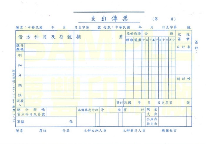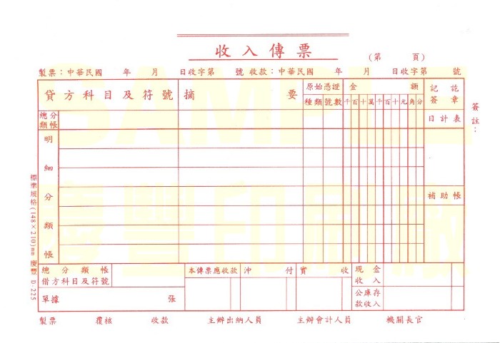 收入支出憑證封底面(白色)