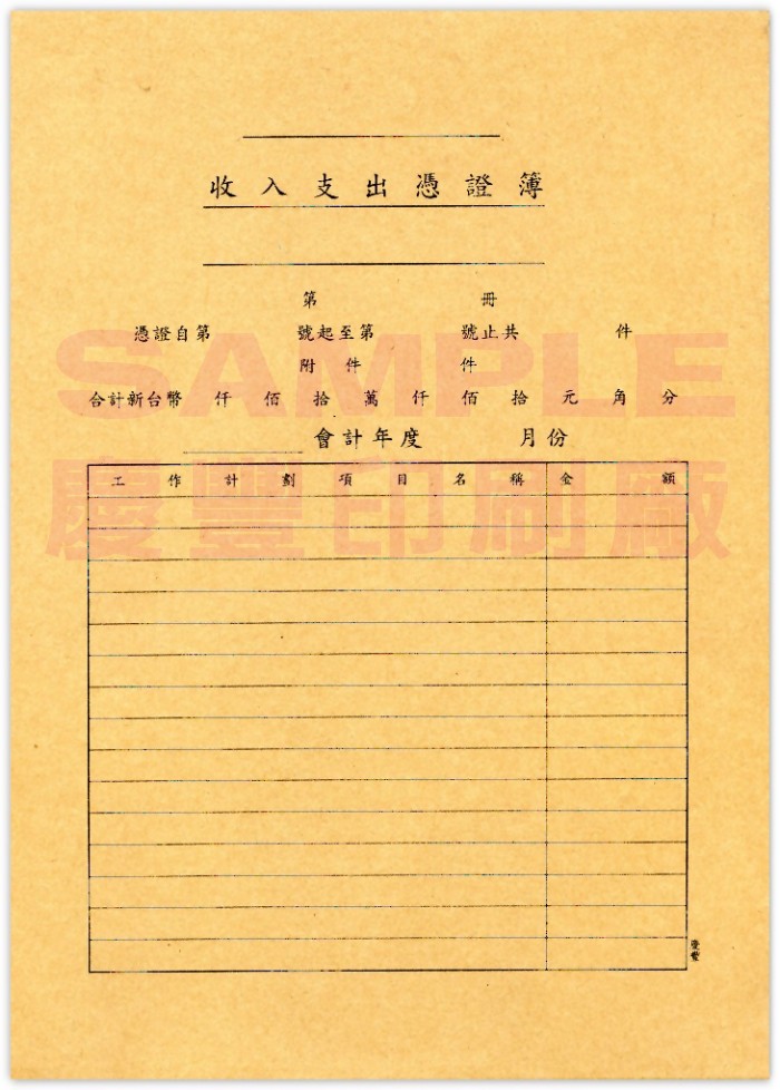 收入支出憑證封底面(牛皮紙)