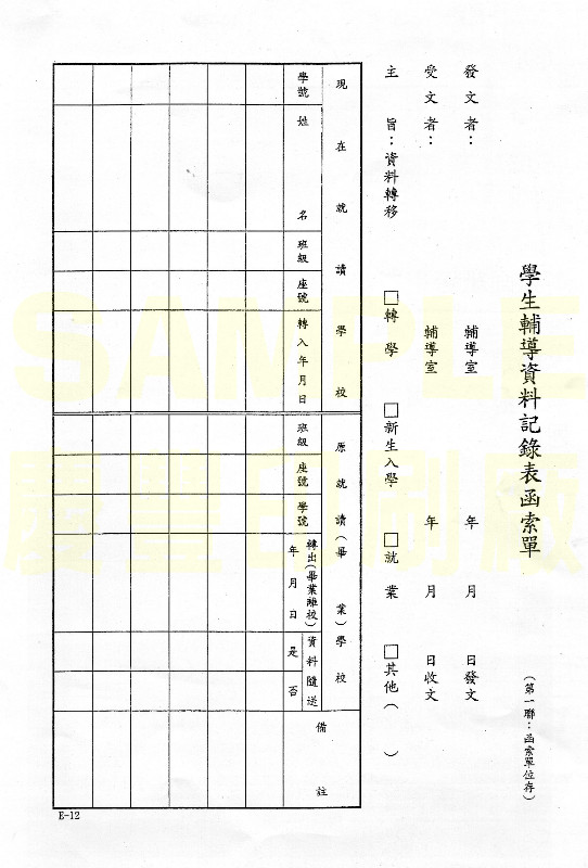學生輔導資料函索單(三聯式)