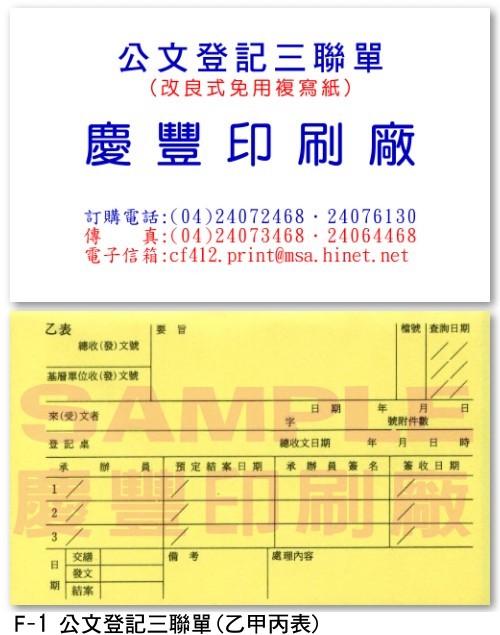 公文登記三聯單(乙甲丙表)