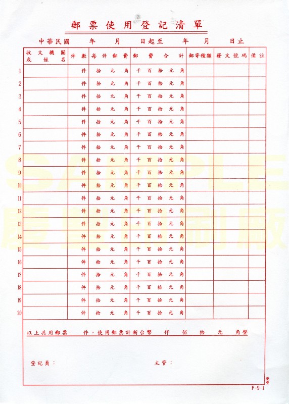 郵票使用登記清單